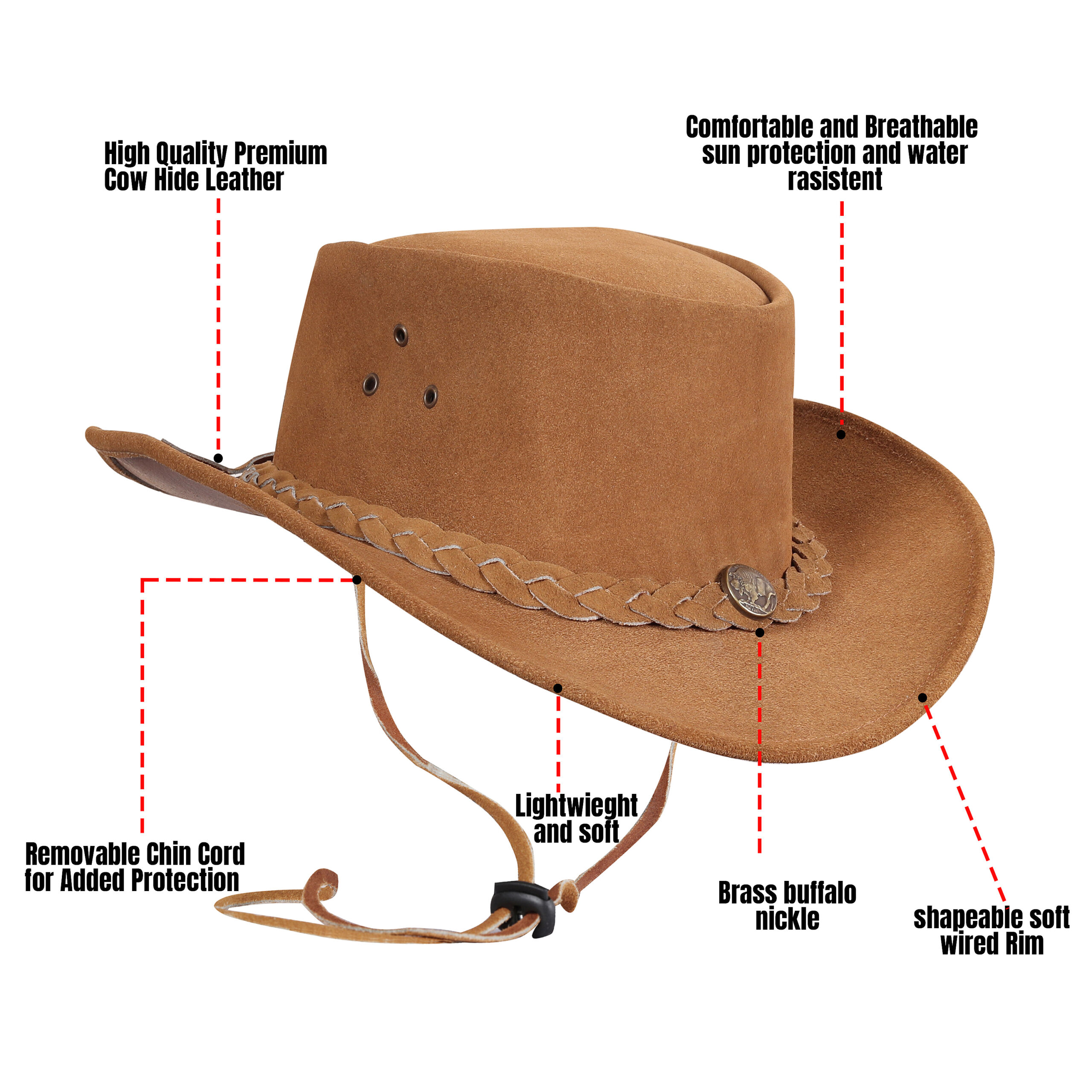 Leren hoed unisex. Stoere hoed van duurzaam rundleer suede, met een tijdloze uitstraling en comfortabele pasvorm. Perfect voor elke gelegenheid!